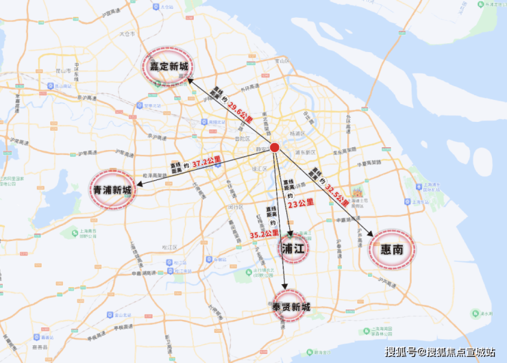首先是位置, 位处闵行浦江板块三水交汇之地,距离人民广场直线约23km,7站前滩,闵行浦东两大强区势能轻松独占,与五大新城相比,距离市中心更近,但是联动价约4.3万/㎡,这样的性价比肉眼可见!