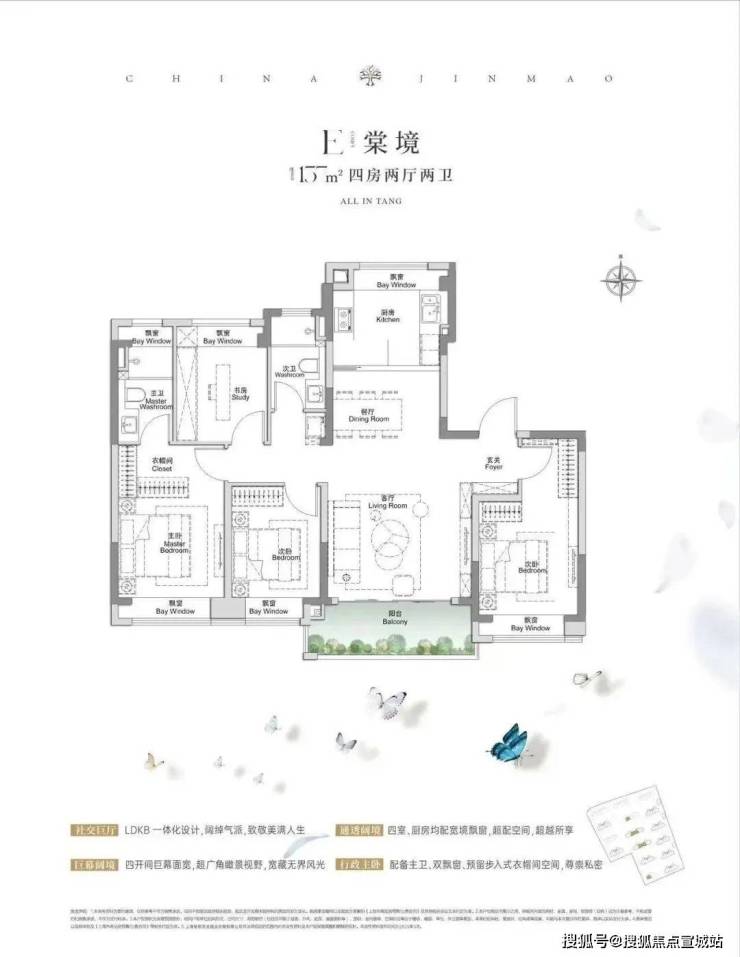 建面约117㎡3房2厅2卫,做到了3+1开间朝南+5个飘窗+主卧套房设计+270°转角飘窗,所有的尺度都有进一步提升。