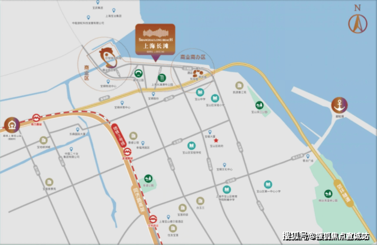 同时,「上海长滩」与国际邮轮港休闲商业配套及城市公园连成一体,西邻地铁3号线及宝山高铁枢纽(规划),南接宝山行政文化中心,尽享淞宝成熟优质的人文教育配套。