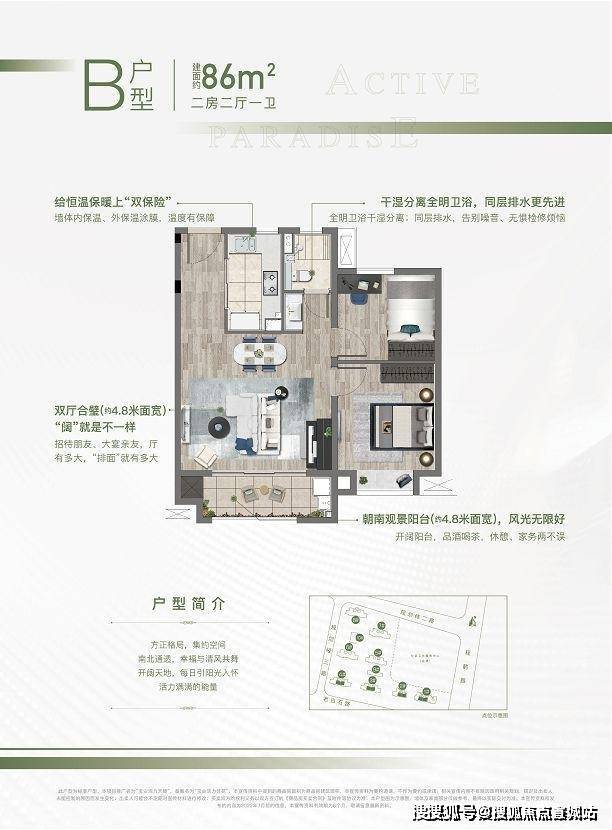 宝业活力天境售楼处电话:400-8558-334卧室做到了一南,一北,南向卧室约11.2㎡,且有飘窗设计,享受阳光沐浴.宝业活力天境售楼处电话:400-8558-334