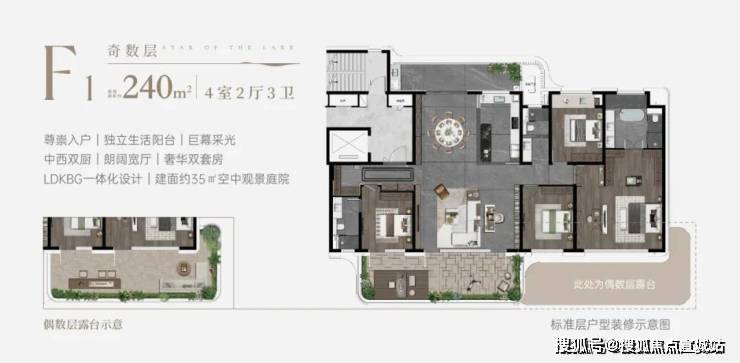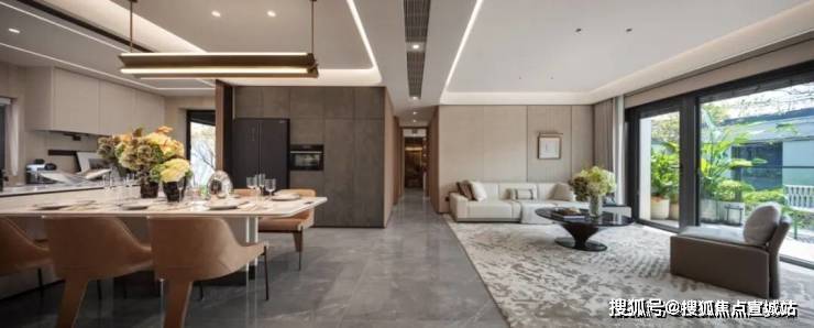 约240㎡样板间,滨湖四代宅的极致尺度,约70㎡横厅以7米南向尺度,盛纳生活百态。约17.3㎡北向阳台串联生活场景,开放式中西双厨消弭空间界限;约39㎡空中庭院(偶数层),约11米南向视野与270°极幕景观,每一次凝望,都是一场心灵的洗礼。