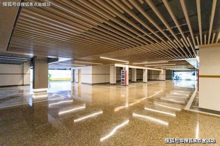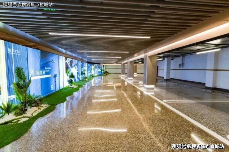 再将目光聚焦到一般项目容易忽视的地库空间.明亮阔绰的地库空间内,顶部以咖色格栅及吊顶光源重塑空间层次感,与之相对应的是在灯光下熠熠生辉的彩石地坪.