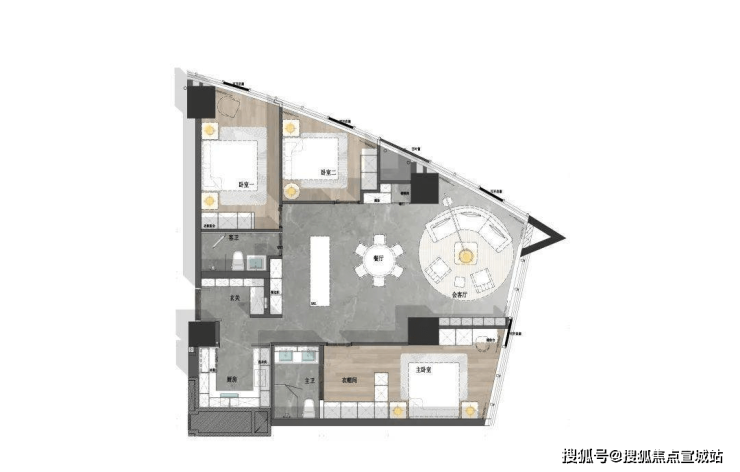 291、家配图:在墨线图的基础上配置上家具的平面效果表现图。