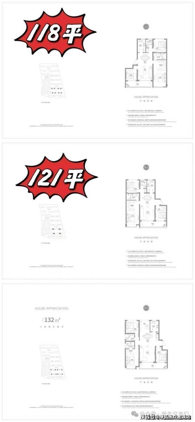 01户:132平,02户:118平,03户:121平,04户:121平,05户:118平,06户:132平