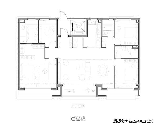 直接放大招,五面宽,南向总面宽17.2米,客厅面宽8.2米,主卧面宽5.4米,自带衣帽间、独立收纳空间。三个套房设计,把豪宅该有的尊崇感安排得明明白白。