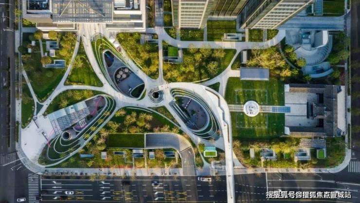 超级符号:菱形超级符号统一运用,室内、景观铺装、单体立面一体化延续