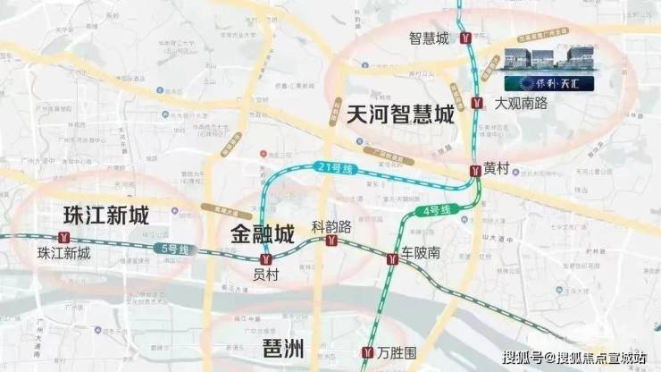 项目距离21号线大观南路站约1.2公里,步行大概需要15分钟,建议买个小电车接驳,一站换乘4号线去往金融城、琶洲,4站到员村换乘5号线直抵珠江新城。