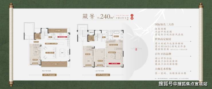 180㎡洋房:四室两厅三卫,南向面宽16.8米