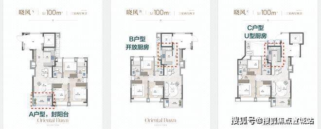 100㎡三房:三开间朝南,LDKB一体化设计,功能性强;