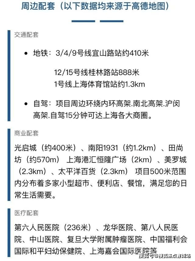 交通配套:距离地铁 3/4/9 号线宜山路站约 200 米,12/15 号线桂林路站 888 米,1 号线上海体育馆站约 1.3km。周边环绕内环高架、南北高架、沪闵高架,自驾 15 分钟可达上海各大商圈。