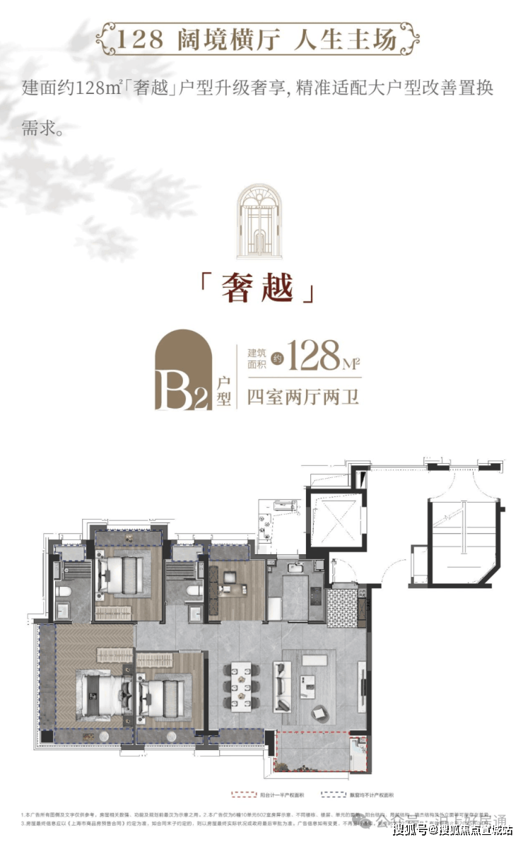 建面约128㎡直接进阶4房,功能性拉满,适配当下越来越多的二胎或三代同堂家庭。