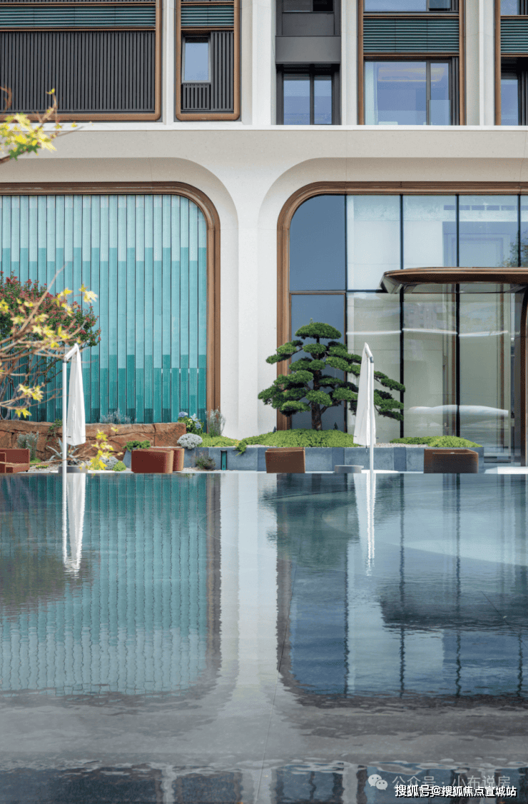 九艺落位,门前皆景:从入口的石艺,到最后一个庭院的泉艺,中建玖上琅宸每一栋楼的门前,都有对应定制的设计主题。