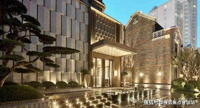 在整个社区的门户位置,保利永兴里采取了定制酒店式落客区、入口,参考了华尔道夫与安缦酒店的设计理念,一步一景,如同高定秀场。