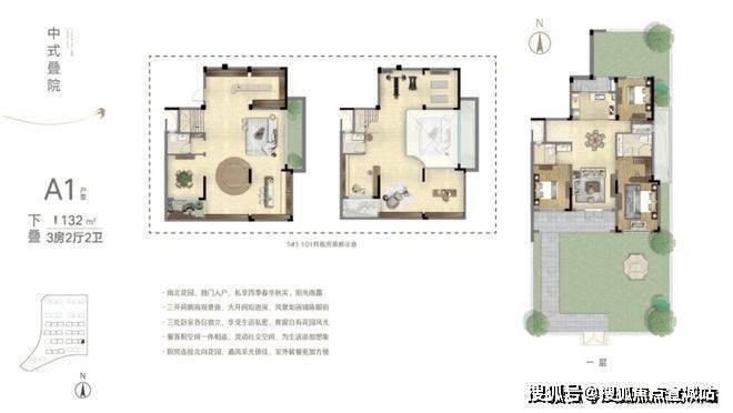 赠送面积:上叠赠送露台。下叠拥有约120-220平方米的超大院子,并赠送地下室。优势:上下叠入户门独立,保障隐私。