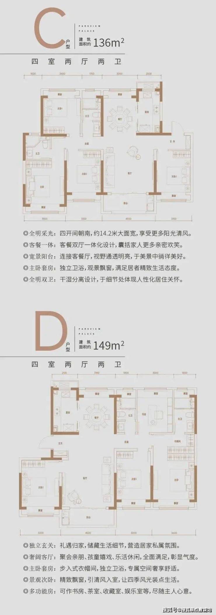建面约166㎡奢境户型,南向四开间面宽可达约16.2m,约6.2米宽厅连接宽幕阳台,突破性尺度设计,带来通透的全景视野,一眼望向城市自然与繁华,居住于此,大平层的尊崇奢居体验油然而生。