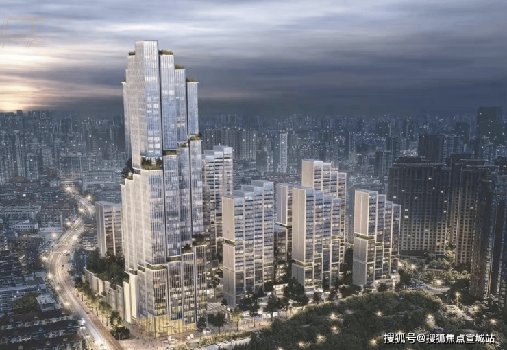 外立面方面,项目整体将打造为新海派建筑地标,设计有弧线阳台、45度玻璃、双层塔冠等,设计灵感来源于蔓楼兰;立面色调方面,将采用珐琅彩色调,具体或为珍珠蓝铝板+红色纹理+金色线条,具体材料及配色还在最终确认。
