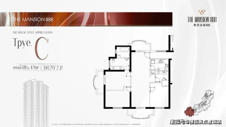 建面约185㎡3房,功能性匹配市场主力需求,尺度阔绰,实乃进阶改善不二之选!