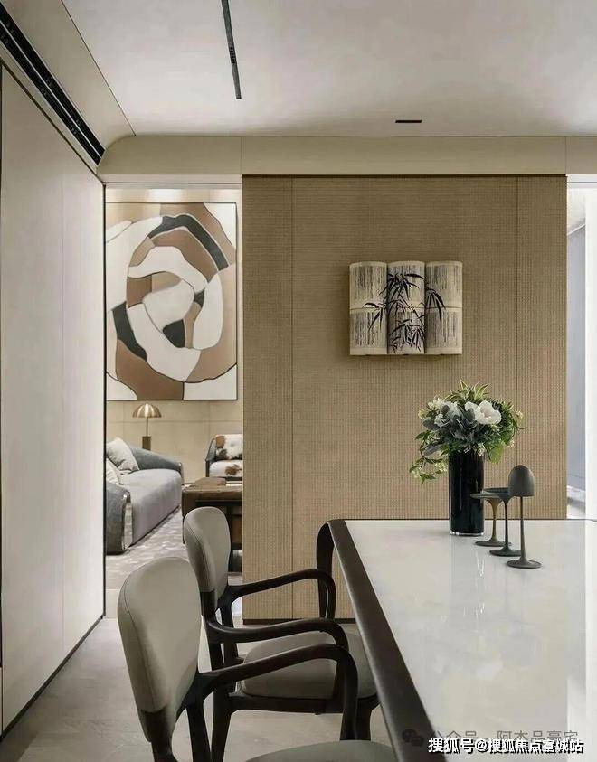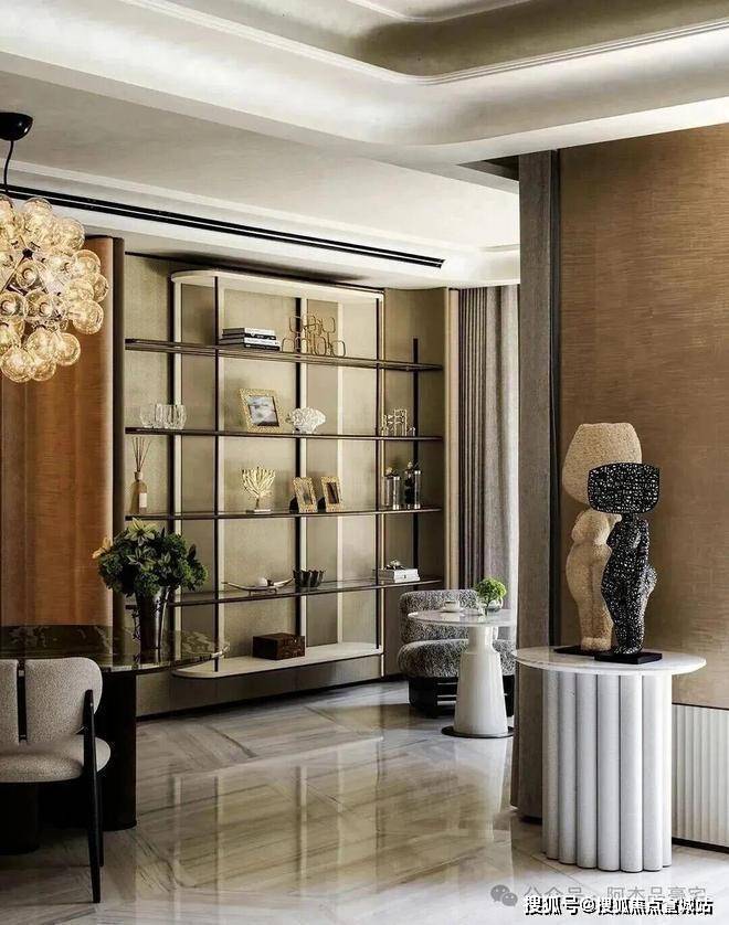 细节设计:全屋预留收纳空间(玄关柜、卧室衣柜均为定制,柜门融入复古木纹),客厅预留隐藏式投影幕布,兼顾观影与日常休闲。