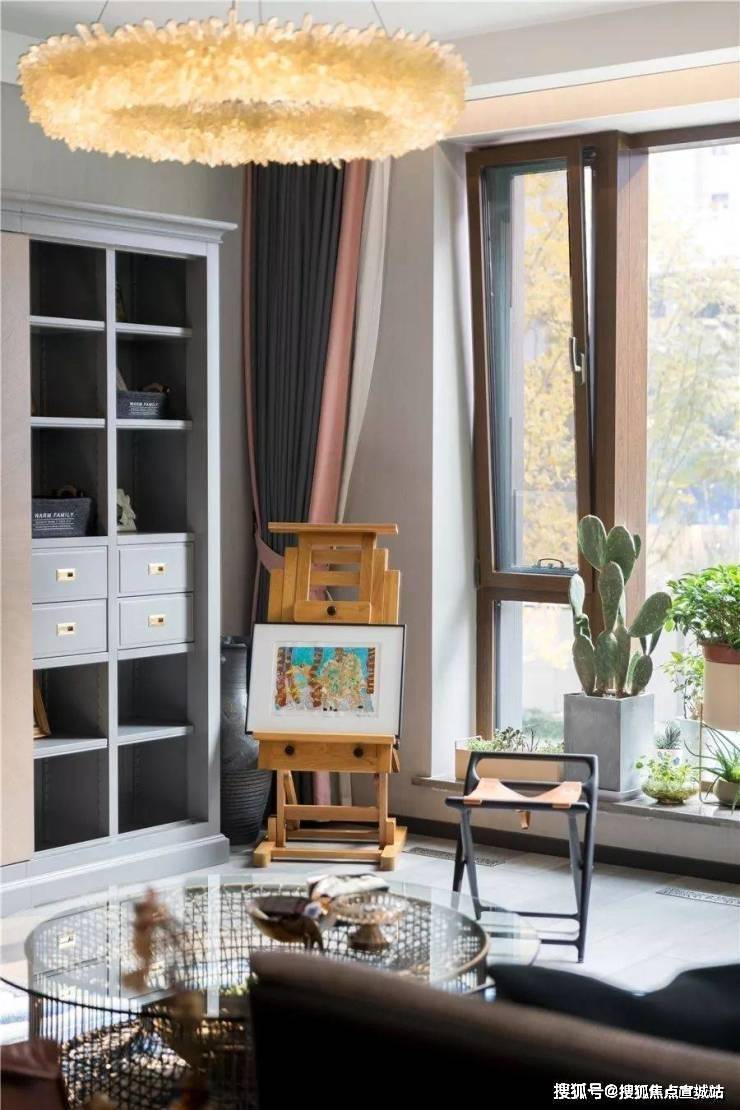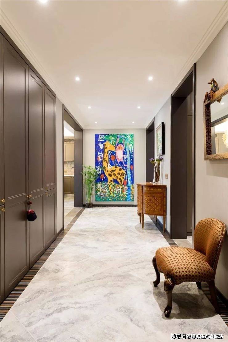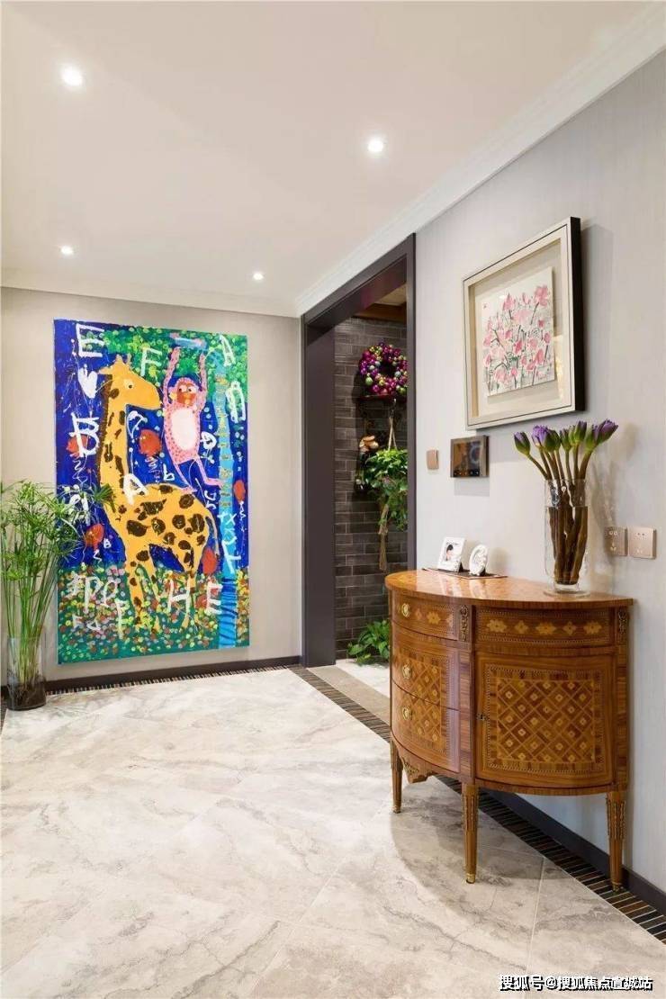她还计划在客厅增加一张大书桌,方便和孩子们一起学书法、画画、做手工。女儿很喜欢画画,门厅那幅色彩斑斓的斑马猴子画就是她的杰作,挂在门厅给玄关空间增添了亮色。