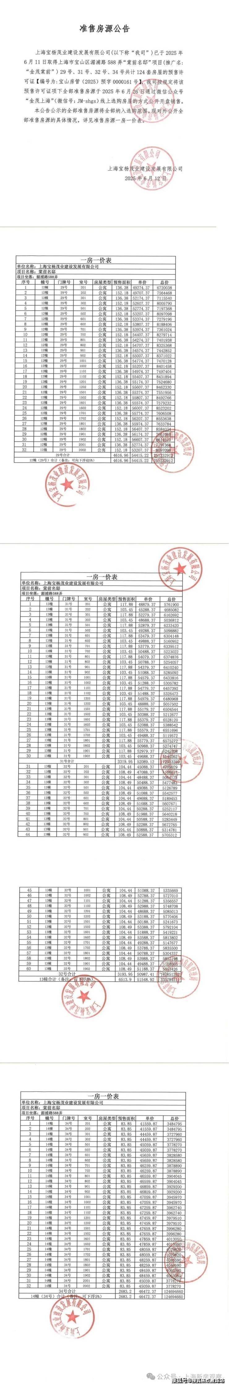 上期一房一价表如下: