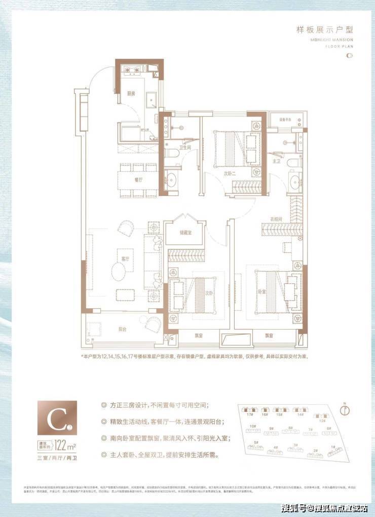 【建面122㎡3居】170.0-190.0万-分布于14#17#16#15#等,2梯3户,层高2.90米,总楼层18F