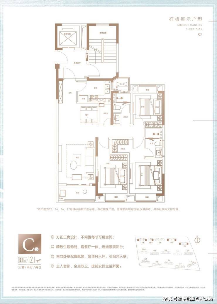 【建面121㎡3居】170.0-190.0万-分布于14#17#16#12#,2梯3户,层高2.90米,总楼层18F