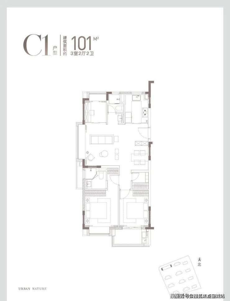 从户型设计看,建面约100、101㎡三房三开间朝南,动静分区、全卧飘窗,主卧就寝区→衣帽间→卫浴间层层递进,仪式感满满。