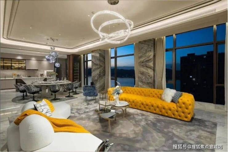 蓝城英冠·滨悦城样板间的落地窗前,大江横陈,一片金光笼罩在江面上。对于想要购买豪华住宅的人来说,滨悦城绝对是一个不可错过的选择。它不仅拥有得天独厚的地理位置和一线江景房源,还提供了丰富的配套设施和智能化系统。