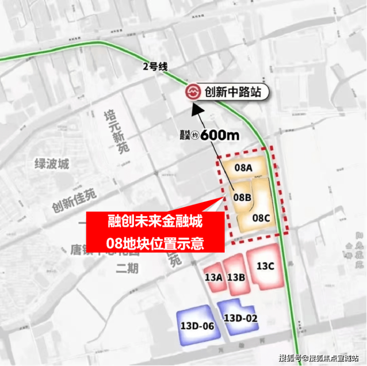 融创在这百万方大城中有8块地,此次推出的08C是这其中难得的上佳位置地块,直线距离2号线创新中路站仅约600米,3站张江。