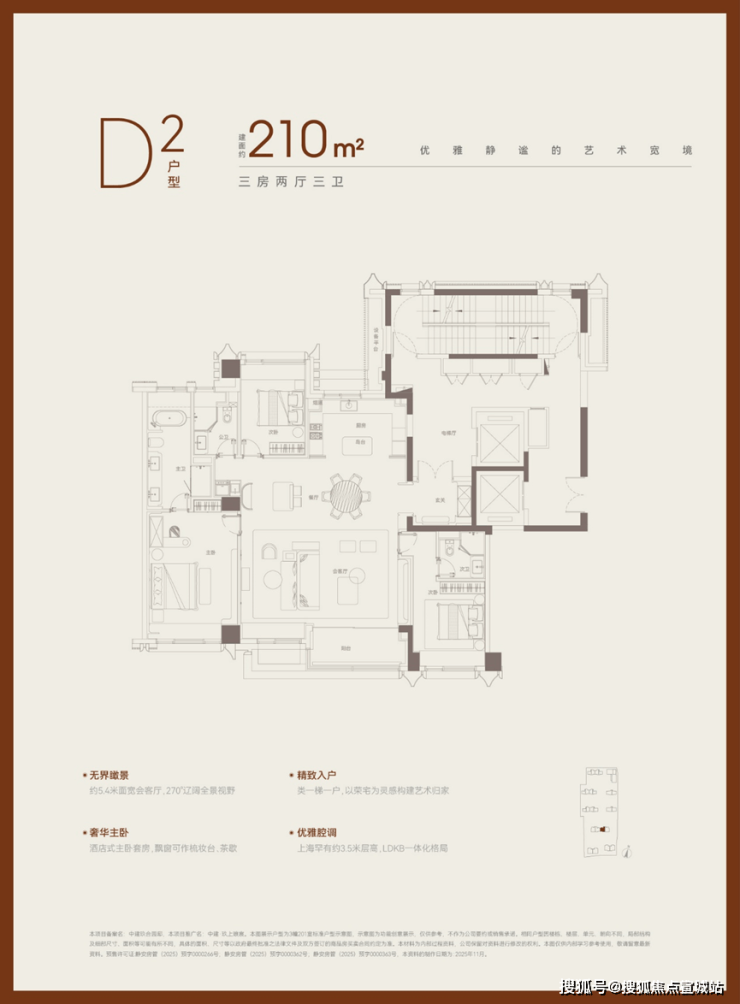 【3#210㎡户型】——南向俯瞰下沉式庭院,北侧私藏浮光池院。