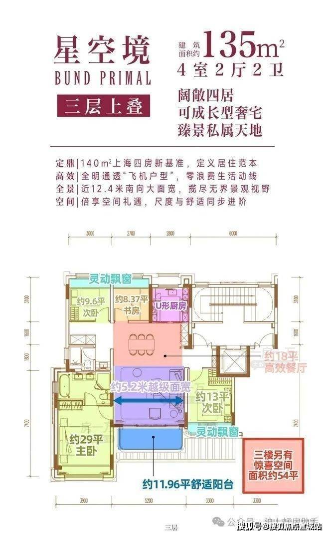 三层上叠,相当于“云端私邸+超额惊喜”还有约54㎡惊喜空间,值得到实地感受!未来轻松实现三房变五房。