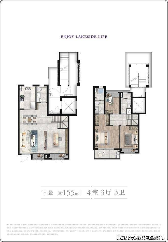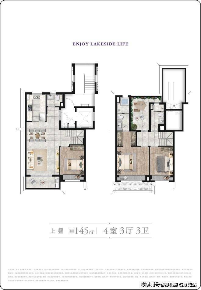 叠加别墅户型:主推建面约 145-155㎡,上叠带星空露台,下叠享私家庭院与地下空间。