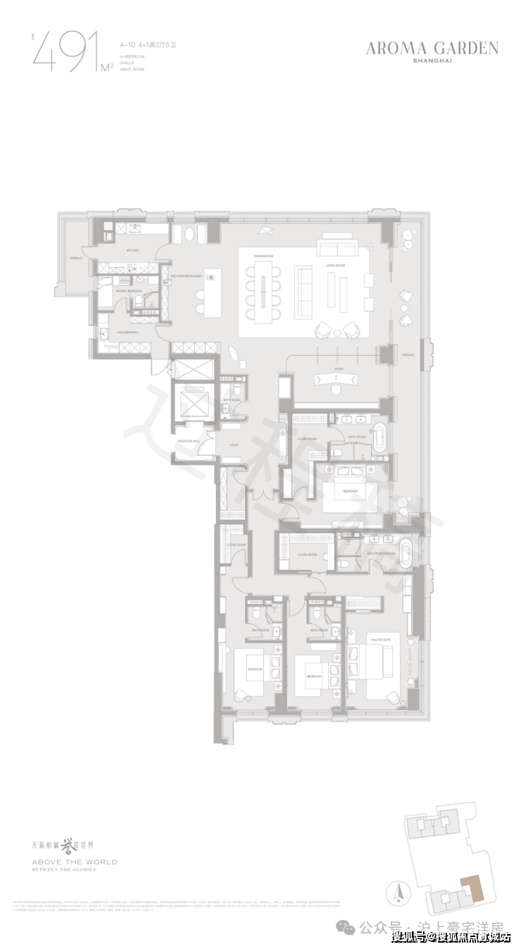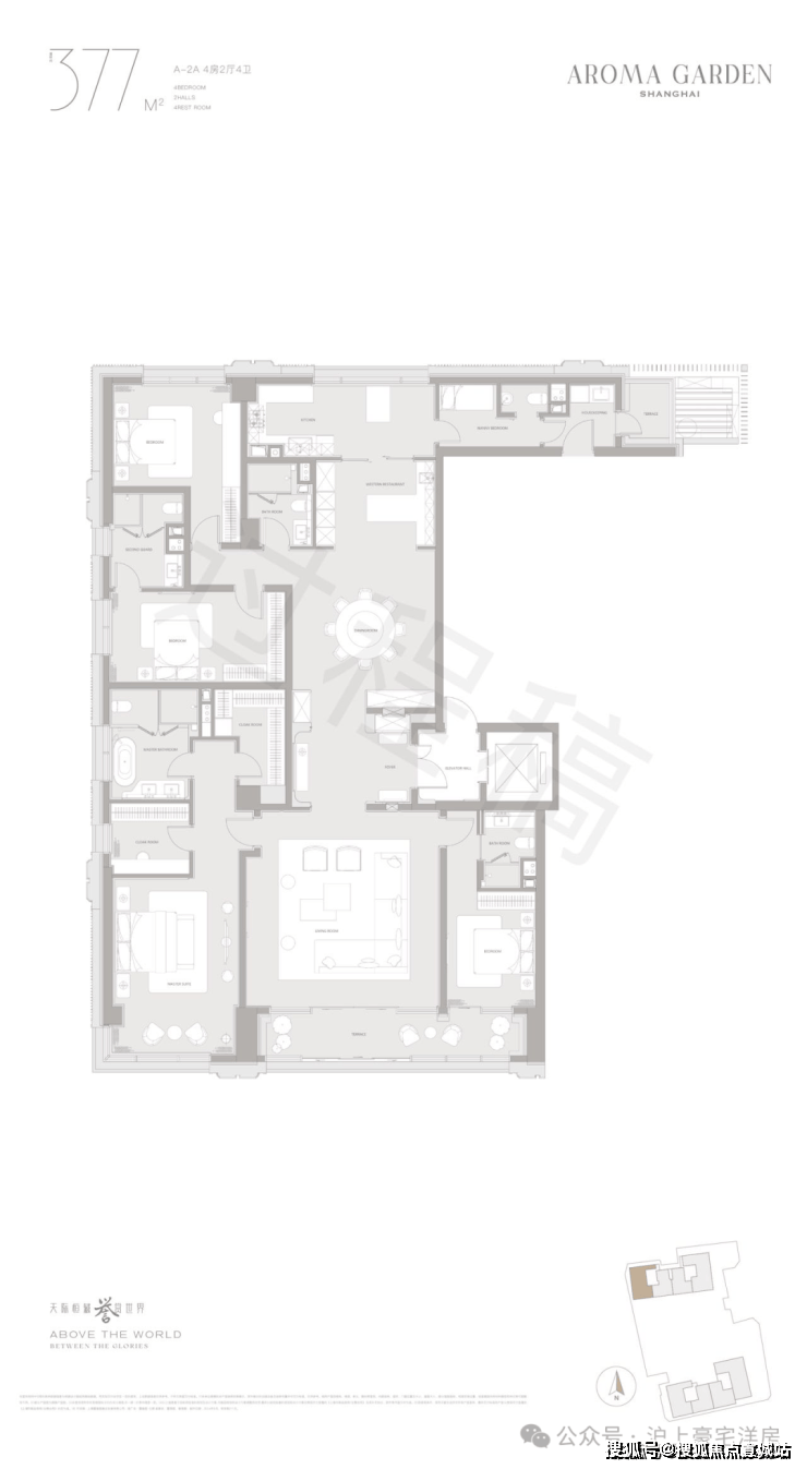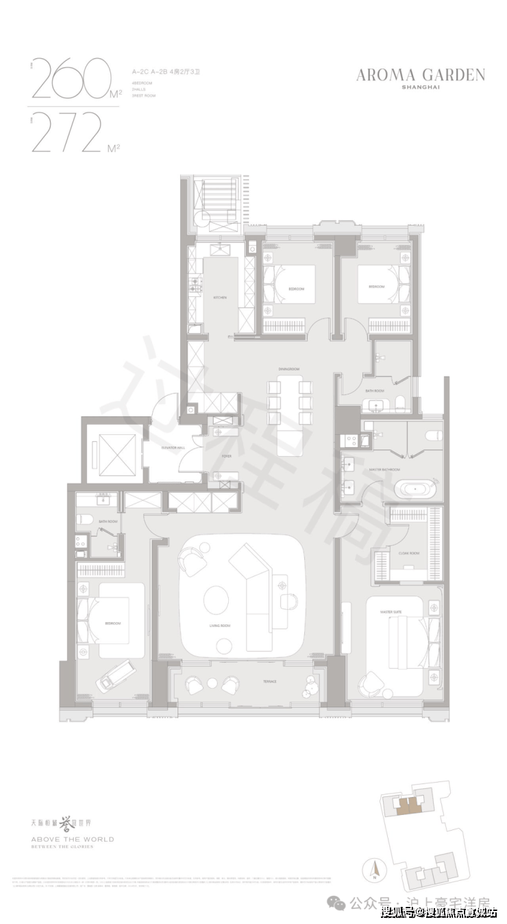 高层户型规划主力面积在260-882㎡区间。豪华主卧套房设计(部分户型为全套房设计),逾百平方客餐厅一体+270度转角落地窗+超宽尺度花园阳台,臻选智能化家居系统及世界顶级精装品牌,赋予居家艺术与智慧生活全新表达。