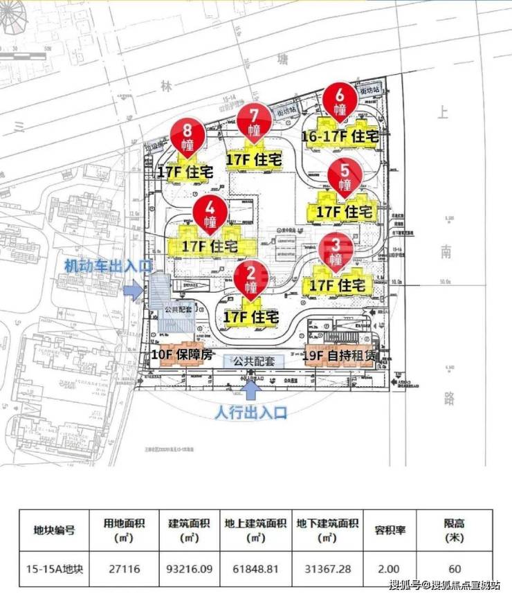 该项目容积率2.0,拟建7幢17层高层商品住宅、1幢19层自持租赁房、1幢10层公共租赁(保障房),以及3层配套公建用房等
