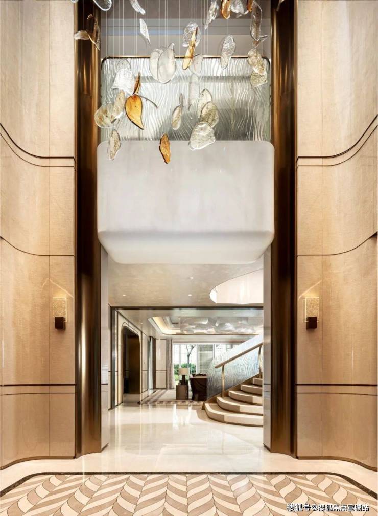 踏入玄关,游艇的奢贵和自然的生动相互映衬,海浪般的弧形线条与意大利艺术玻璃墙面形成潮汐般的视觉冲击.光影在水晶吊灯里流转,客厅与餐厅的朗阔经由珍贵玉石、木料和经典软装点缀,雅致氛围油然而生.主卧空间,融合游艇风的惬意与尊贵,手工艺术树脂板的独特质感与奢华水晶灯饰相得益彰,匠人们的潜心打磨,融入生活的美学定制,让每一寸空间都被赋予了超越平凡的艺术尊严.