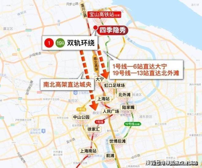 宝山站(在建)总开发规模约50万㎡,预计27年通车,年客流量约5400万,沪渝蓉铁路、沪苏通铁路二期及19号线(在建)等在此处汇集。(信息来源:上海发布公众号)