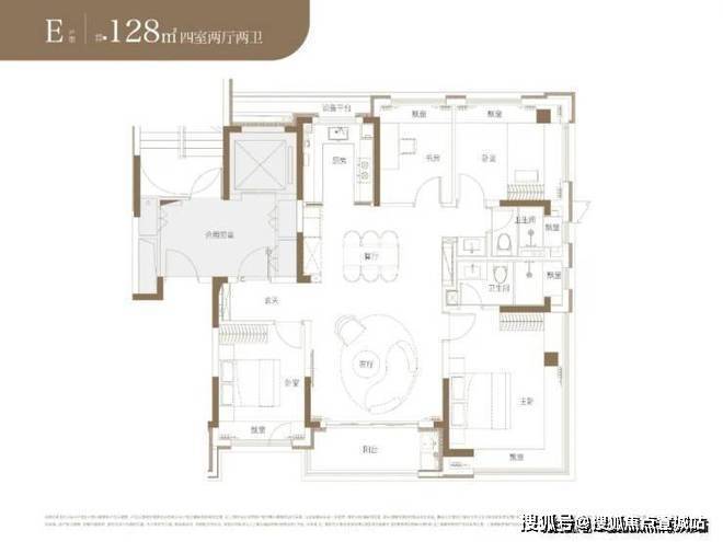 户型为建面约92-105-128-136-143㎡3-4房。