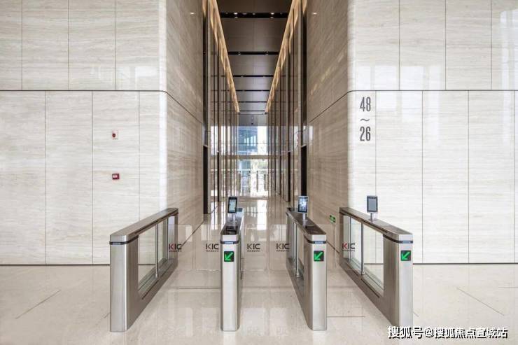 在商务体验改革方面,KIC柯桥国际中心引进 21部原装三菱电梯 ,以平均电梯等候时间小于40s, 最高时速6m/s的领先速度 ,大大减少了日常员工上班、外出时的候梯时间,这一速度也远远领先柯桥其他商务平台。同时引进10大智慧科技防护,在大堂电梯间前面,安置了科技感十足的通行道闸,集人脸识别、刷卡、监控于一体,保障了商务同行的安全。