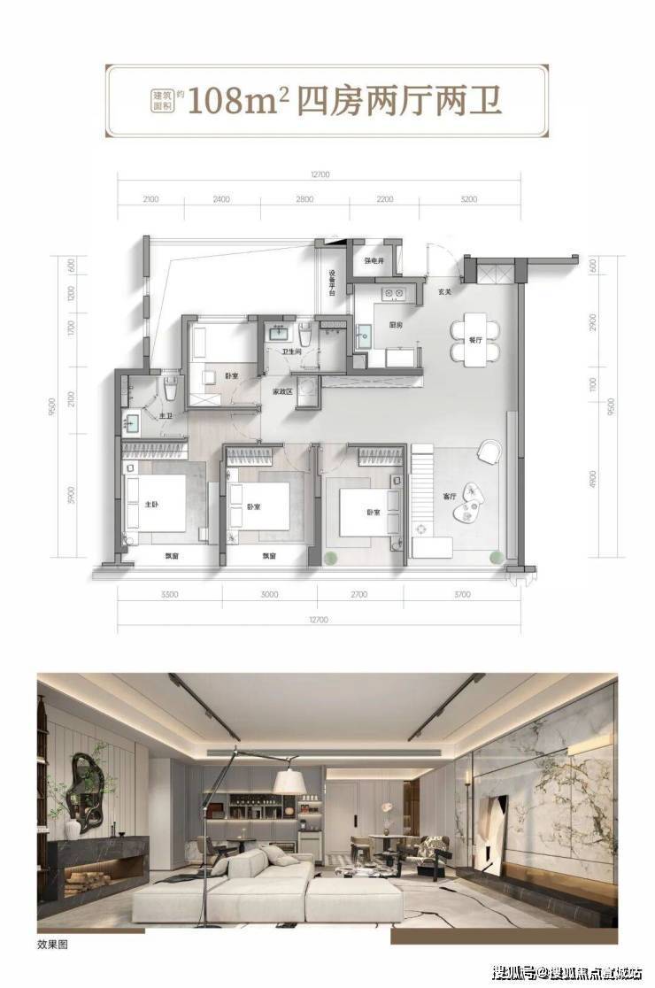 建面约108-139㎡低密高层产品,在保亿的精心设计下,更是迎来了相对于传统高层产品的全面迭代升级。约108㎡中间套突破传统格局,以约12.7m南向采光界面重构阳光生活尺度,四室两厅全能空间满足家庭全周期需求。