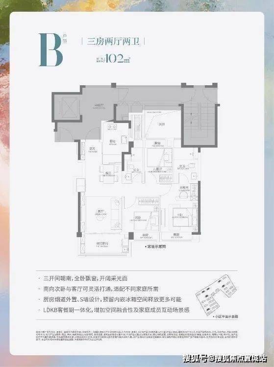 看产品:主力户型为建面约89-102㎡的大三房,三开间朝南+动静分离+全卧飘窗+S墙设计。