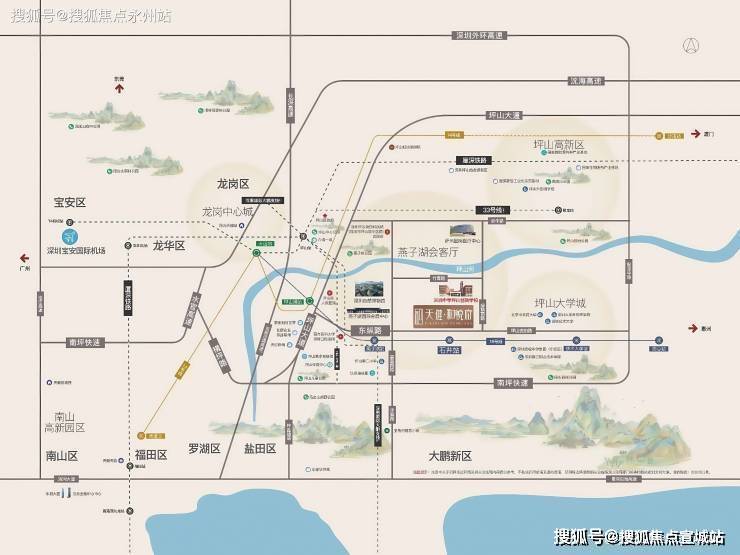 多维路网:1.5km上南坪快速三期,30分钟直达福田CBD,3km接驳外环高速、沈海高速双动脉,规划深大城际聚龙站(在建)直线距离3.5km