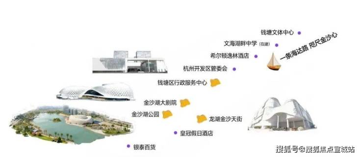 也不仅仅是金沙湖,沿着海达路驱车出行约2公里,你还能看到整个金沙湖CBD的精华:钱塘图书馆、钱塘问题中心、希尔顿酒店、金沙天街、金沙大剧院、银泰百货等都陈列在这条道上。