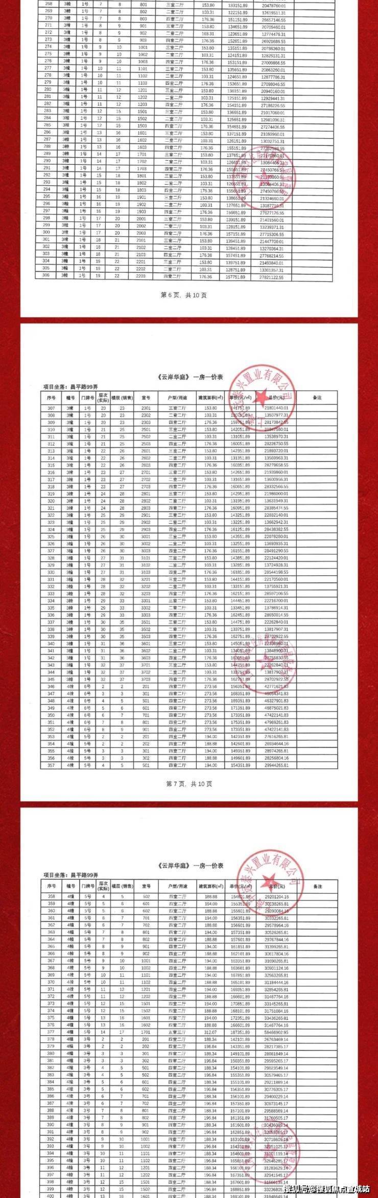 一房一价表如下