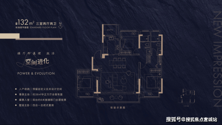 产品设计:全横厅进阶户型,超高窗地比(约75%-78%得房率)