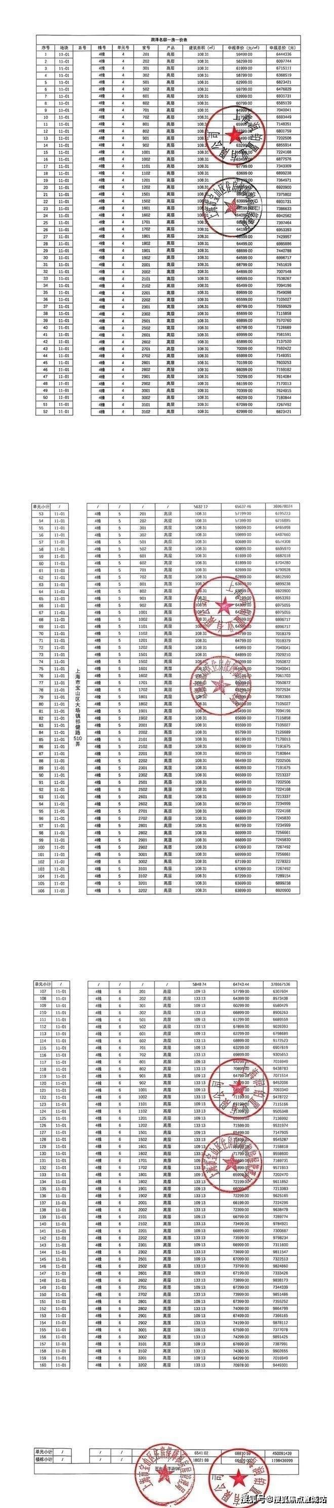 一房一价表:
