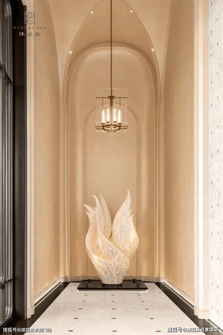 穿过大门,在光影浮动间,你迈进挑高归家大堂,就像闯进了一座美学圣殿。这处归家场域灵感来自哥本哈根的格伦特维教堂,采用拱券造型,再铺就雪花白、宝格丽粉奢石,艺术之美任谁也抗拒不了。