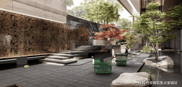 国贸海上原墅作为广富林溯源之作,打造诗意会所空间,包含泳池、咖啡厅、私宴厅、下沉庭院、健身房等功能。并且引入黑松、山石、景墙、草坪等人文自然资源,呈现一处充满国风艺术感的社交场!