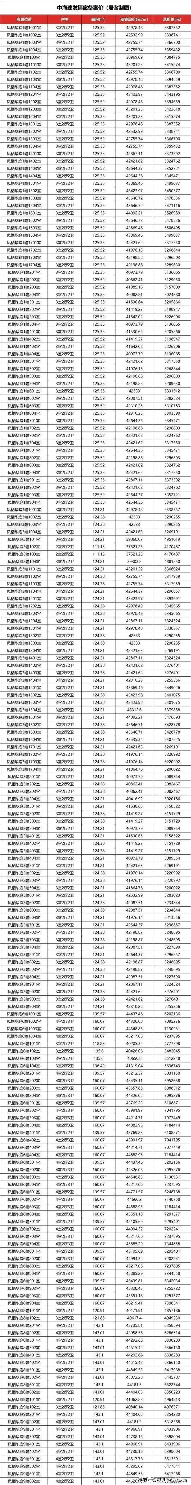 一房一价表如下