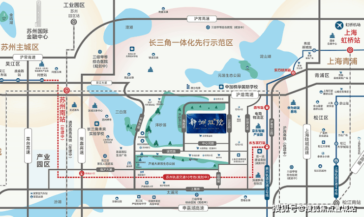 距苏州南站仅7公里,年底通车15分钟到虹桥;3分钟上高速,30分钟到虹桥;江浙沪两省一市,地铁无缝接轨。