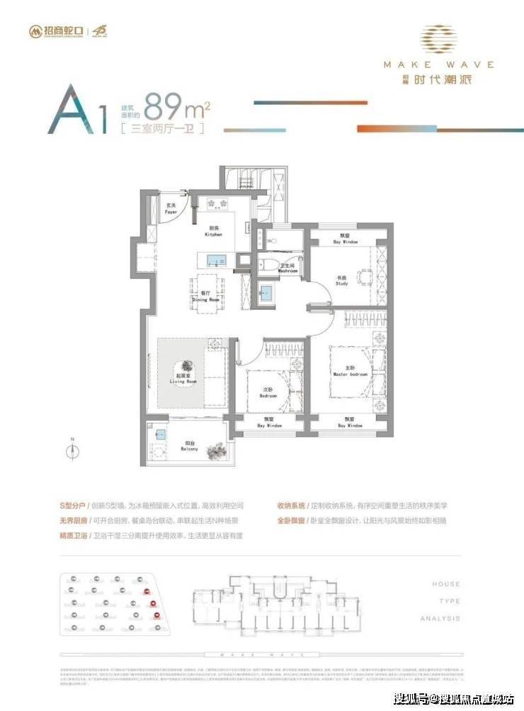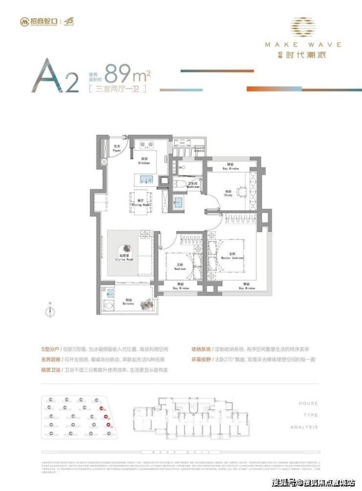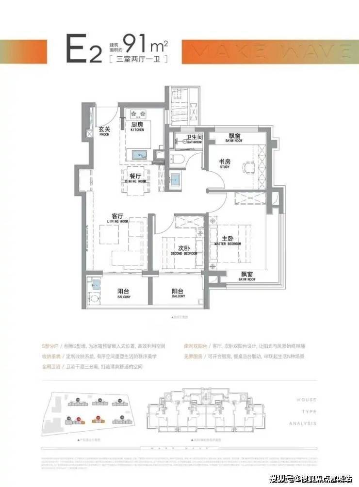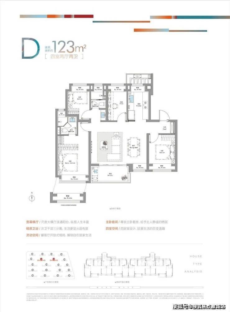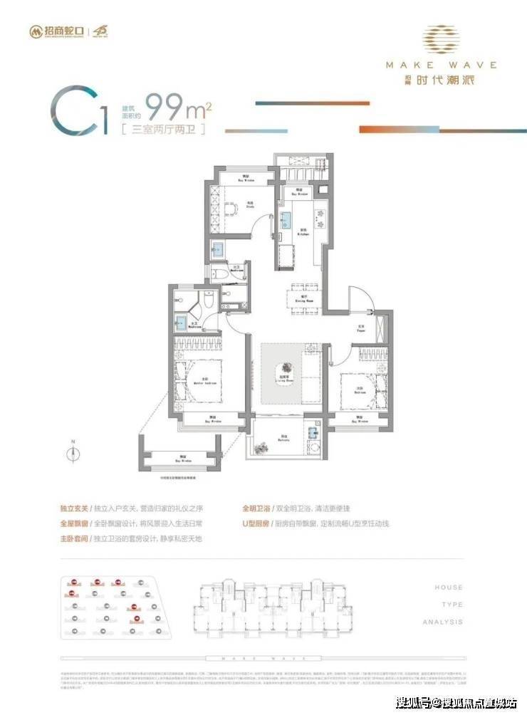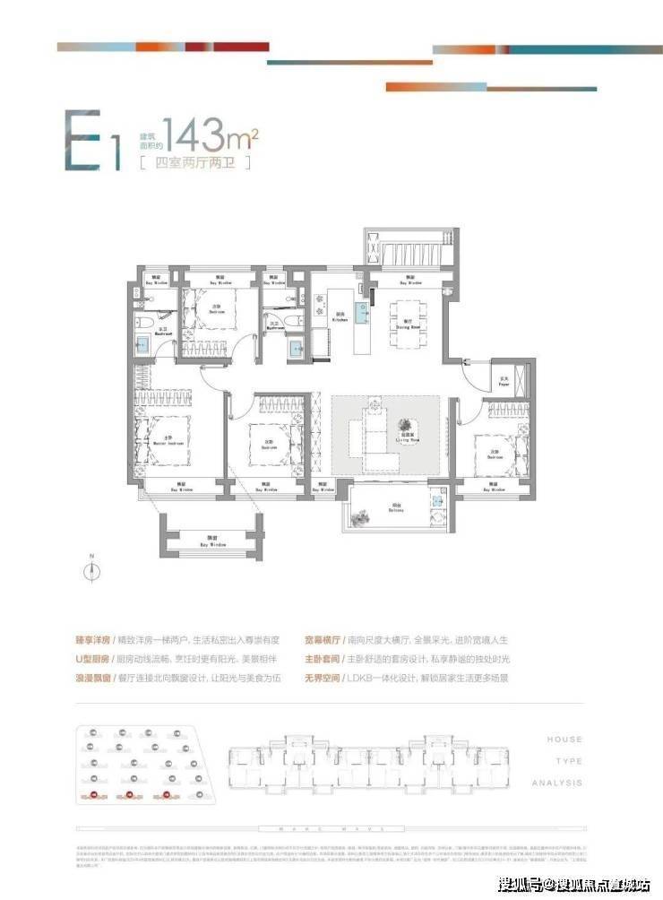 户型设计:全明通透、南北双阳台、动静分区,部分户型有270度转角窗